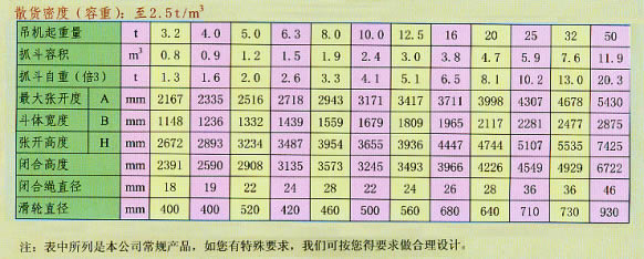 雙索雙瓣抓斗抓取比重為0.4-3.2t/m3各種粒度均勻的散貨,通常為糧食、煤炭、水泥、黃砂石子、礦粉、礦石、鹽等。抓斗容積有0.5至10立方。 電動平口抓斗常用于多用途起重機上,自身有開閉機構,可以在任意高處裝卸物料,但需增設輸送能量的電纜裝置。四索雙瓣抓斗適用于港口、能源流通行業(yè)中橋式卸船機,抓取比重為0.6-3.2t/m3各種粒度均勻的散貨,通常為糧食、煤炭、水泥、硫磺、礦粉、礦石等。