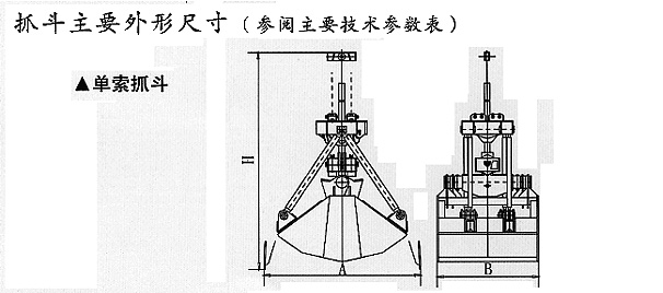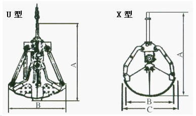 單繩抓斗用于只有一個起升卷筒的起重機上,具有開閉機構(gòu)新穎,裝卸料時開閉自如,適用水下、陸上作業(yè)。按結(jié)構(gòu)特點分X型(懸掛式)和U型。