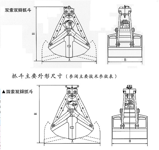 雙索雙瓣抓斗抓取比重為0.4-3.2t/m3各種粒度均勻的散貨,通常為糧食、煤炭、水泥、黃砂石子、礦粉、礦石、鹽等。抓斗容積有0.5至10立方。 電動平口抓斗常用于多用途起重機(jī)上,自身有開閉機(jī)構(gòu),可以在任意高處裝卸物料,但需增設(shè)輸送能量的電纜裝置。四索雙瓣抓斗適用于港口、能源流通行業(yè)中橋式卸船機(jī),抓取比重為0.6-3.2t/m3各種粒度均勻的散貨,通常為糧食、煤炭、水泥、硫磺、礦粉、礦石等。