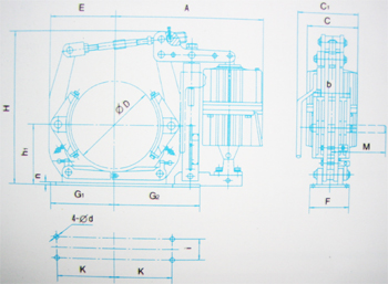 型號(hào)Type | 制動(dòng)力矩 Torque (N.m) | 退距 Clearance | A | b | C | C1 | D | d | E | F | G1 | G2 | H | h1 | i | k | M | |||||