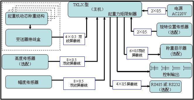 一種解決中小型碼頭用“回轉(zhuǎn)動(dòng)臂式起重機(jī)”采用雙索無(wú)功抓斗裝卸散料中,也能安裝起重力矩限制器和同時(shí)解決無(wú)功抓斗裝卸計(jì)量問(wèn)題,通過(guò)安裝在起重臂頭部的《起重機(jī)動(dòng)態(tài)稱重結(jié)構(gòu)》采集重量信號(hào)和安裝在起重臂根部的角度傳感器采集角度信號(hào),對(duì)采集到的重量、幅度等信息進(jìn)行綜合處理,相應(yīng)的輸出各種開關(guān)量,用以控制起升、變幅機(jī)構(gòu),防止超載和超幅,從而達(dá)到安全保護(hù)、高效的作業(yè)目的。力矩儀表能顯示當(dāng)前工作角度、工作幅度。額定起重量、當(dāng)前重量,如加稱重管理儀表還可把每斗裝卸凈重和次數(shù)累計(jì)清單、匯總,解決無(wú)功抓斗吊機(jī)不能安裝電子計(jì)量監(jiān)控系統(tǒng)和起重機(jī)力矩限制器,該《起重機(jī)動(dòng)態(tài)稱重結(jié)構(gòu)》能很好的克服吊臂在工作中無(wú)規(guī)律的變幅,不斷接受鋼絲繩的壓力傳給稱重滑輪采集重量信號(hào),當(dāng)完成95%額定起重量訊響器斷續(xù)預(yù)警,在100%額定起重量連續(xù)報(bào)警,在105%額定起重量時(shí),切斷主副機(jī)和變幅機(jī)構(gòu)上升電源,對(duì)設(shè)備和安全起保護(hù)作用。