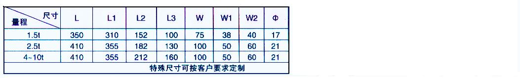 QCXB型系列傳感器主要安裝于軸承座下,也可用于在其他結(jié)構(gòu)形式下,是主要測量壓力的一種傳感器。為方便用戶單獨(dú)購買此傳感器,特將其分離出來標(biāo)注尺寸如下,訂貨型號標(biāo)注例如“QCXB-10t”